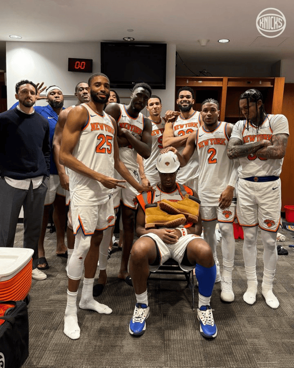 賽后尼克斯官媒更新了X,官媒曬出更衣室照與球迷分享。板防